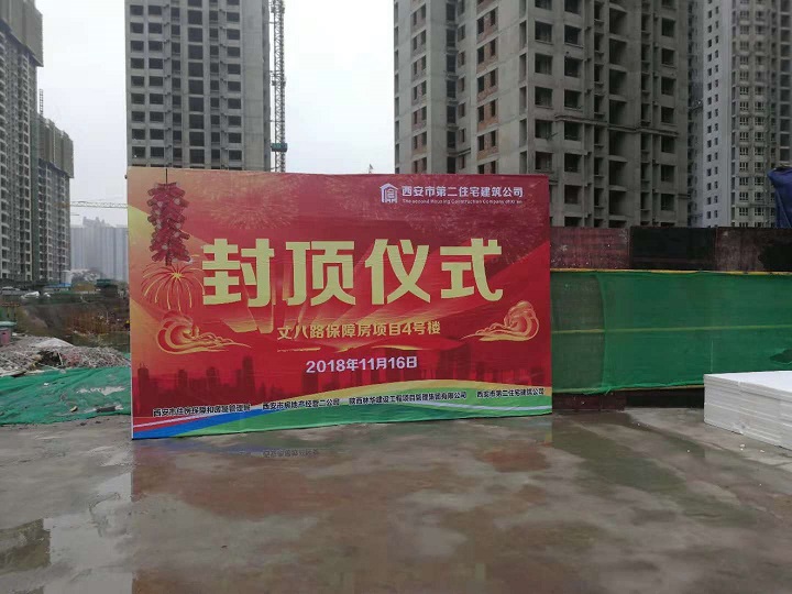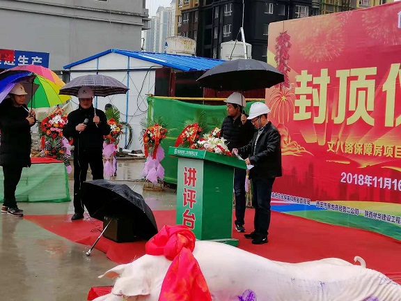 11月16日星期五丈八路保障房項目的施工現(xiàn)場,禮炮在片片雨云中炸響,鞭炮粘著雨花淅淅的散落著,雖然下著小雨,但是現(xiàn)場依舊人山人海,熱鬧非凡;10點50分隨著項目指揮長邢京平同志的聲音響起,丈八路項目封頂儀式正式開始。丈八路保障房項目4號樓主體順利封頂,標(biāo)志著丈八路項目再一次完成了重要節(jié)點性的施工任務(wù),這是所有現(xiàn)場施工人員堅持不懈的努力下共同完成的勞動成果;開發(fā)單位西安市經(jīng)營二公司書記王備戰(zhàn)同志在講話中對現(xiàn)場施工人員的工作予以高度肯定,并再三叮囑大家要再接再厲完成好后續(xù)工作,參加本次活動的還有建設(shè)單位各級領(lǐng)導(dǎo),監(jiān)理單位總監(jiān)及各專業(yè)工程師,施工單位西安市第二住宅建筑公司副經(jīng)理杜軍、技術(shù)總工劉琪、指揮長邢京平、現(xiàn)場負(fù)責(zé)人陳衛(wèi)民及各級現(xiàn)場施工人員。